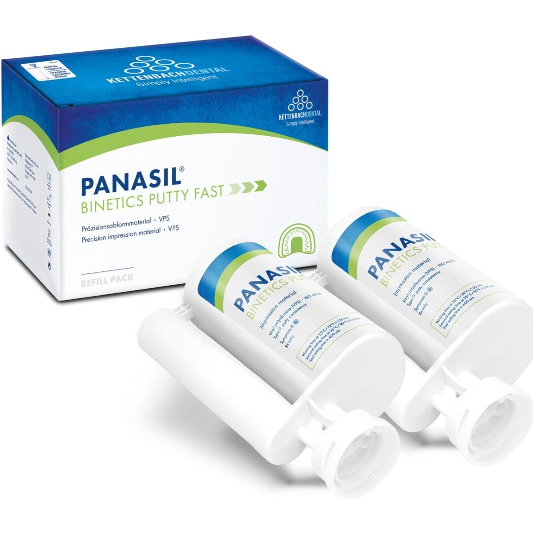 Voor de twee fase afdruktechniek is dat Panasil® tray Fast en Panasil® binetics Putty Fast.