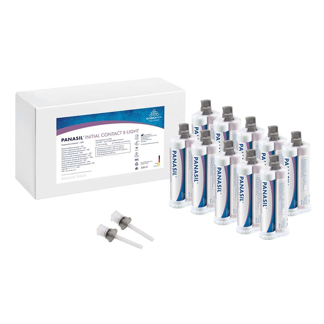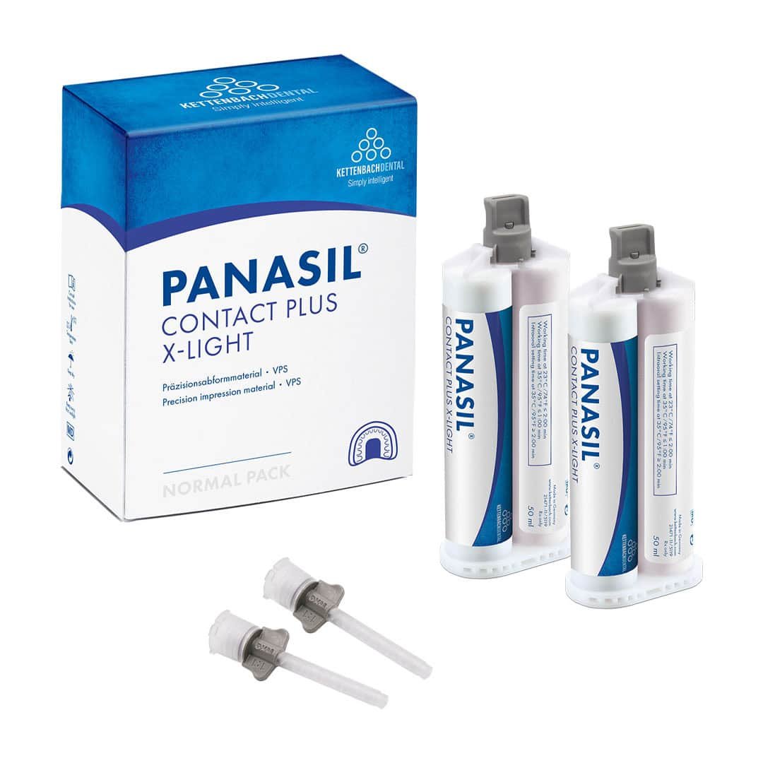 Panasil® contact two in one Light en contact plus X-Light zijn twee precisie additiesiliconen afdrukmaterialen met uitstekende thixotrope eigenschappen voor de vervaardiging van een perfect zittende prothese. De "non pressie" afdruktechniek.